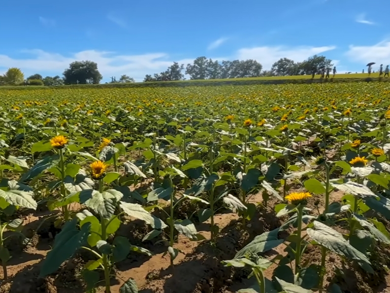임진강 절벽 위에 자리한 고구려 유적지 호로고루는 가을이면 해바라기 물결로 뒤덮입니다. 올해는 약 5만 본의 해바라기가 심어졌으며, 9월 중순 이후가 절정이에요.